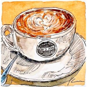 ウッド調でレトロおしゃれを感じるカフェの外観をスケッチしました。使用画材